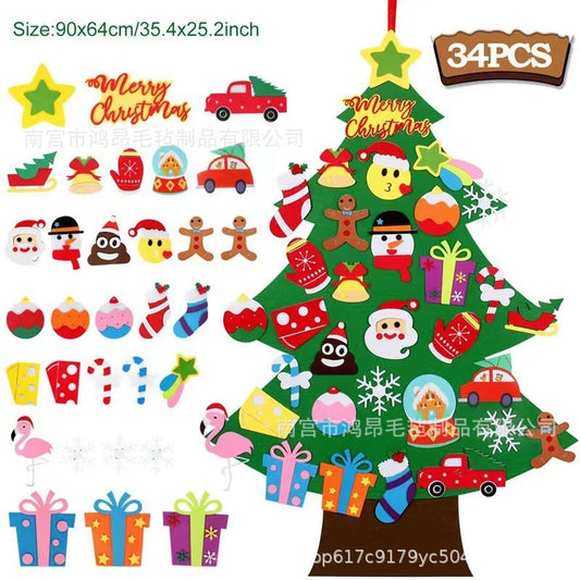 DIY Felt Christmas Tree with 30pcs Ornaments, Xmas Gifts for Kids Year Handmade Christmas Door Wall Hanging Decorations